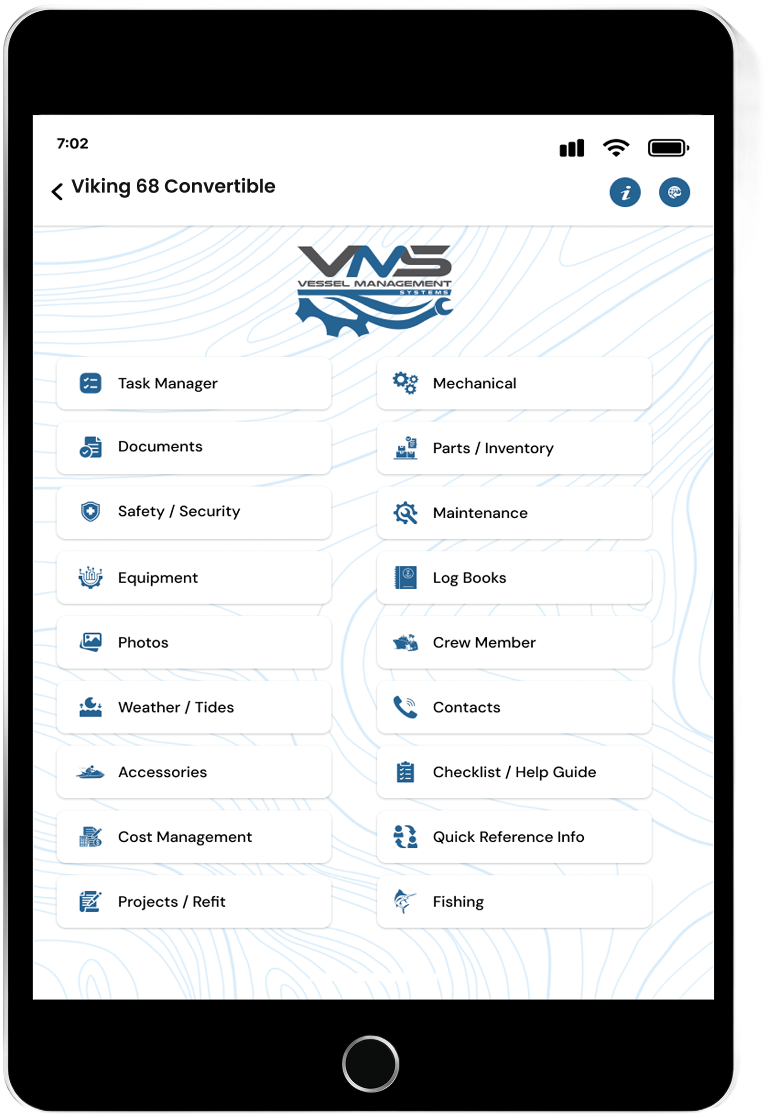 as, Vessel Manuals, Registration, Maintenance Recorders, Invoices,